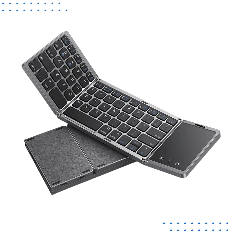 We tested this keyboard’s build quality, Bluetooth performance, typing comfort, and battery longevity. The fold mechanism remained firm after over 100 folds, and the touchpad was highly responsive across multiple operating systems.